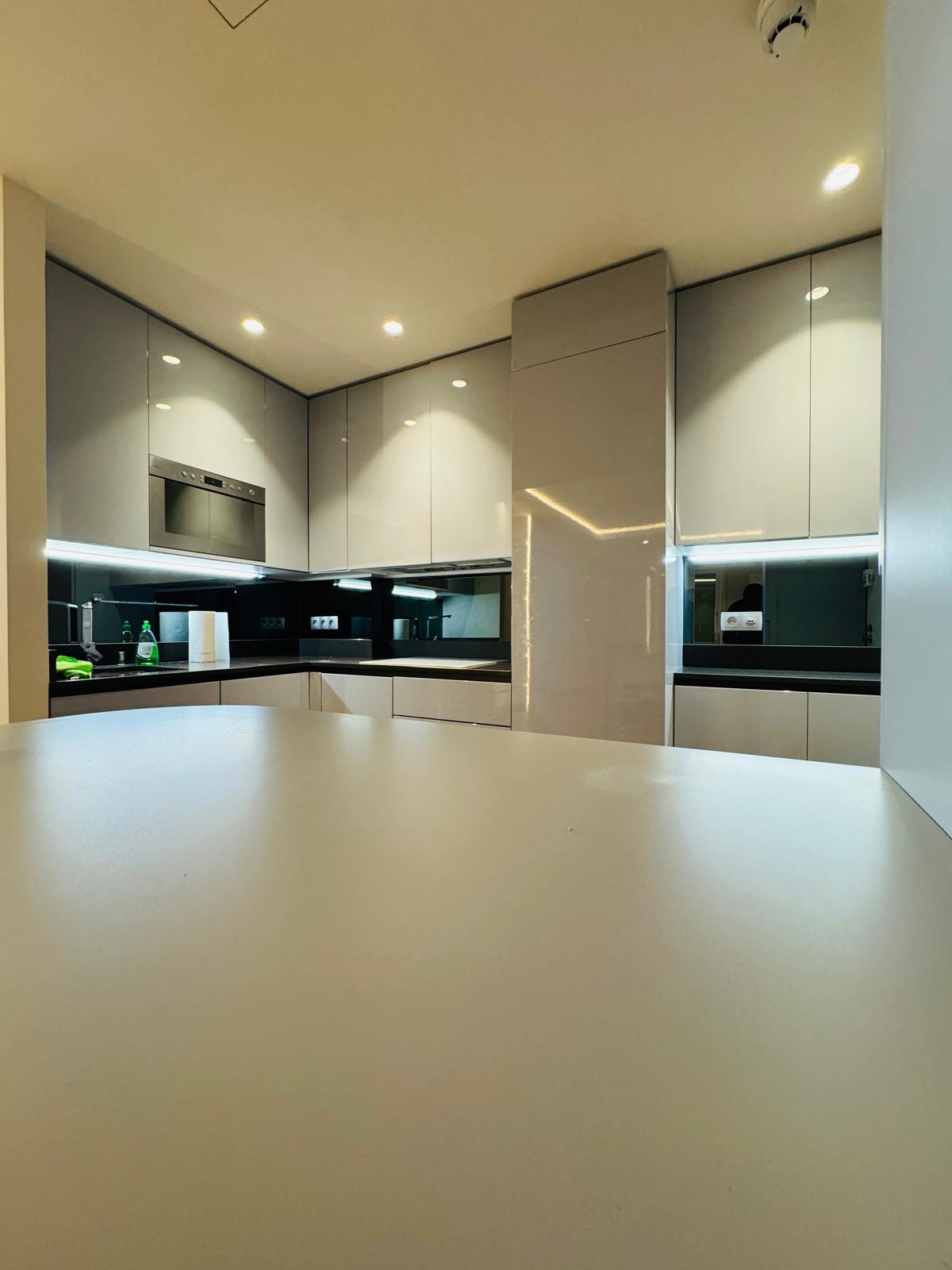 Les travaux ont inclus la création de cloisons et doublages, la reprise des réseaux techniques, l’application de peintures professionnelles et l’installation complète de la cuisine.